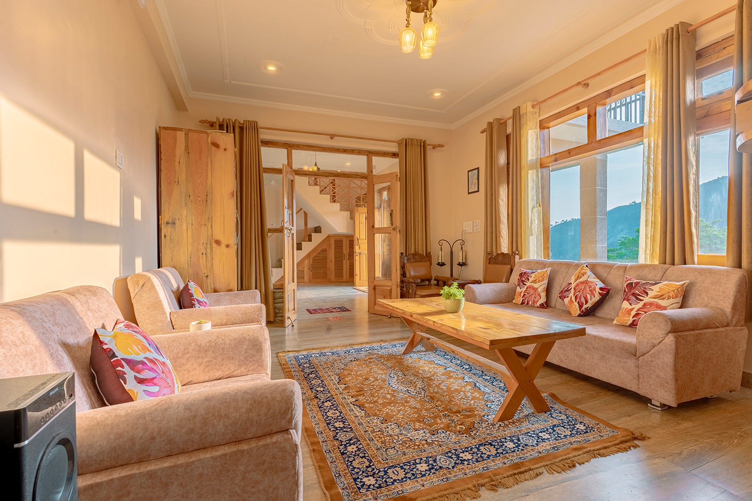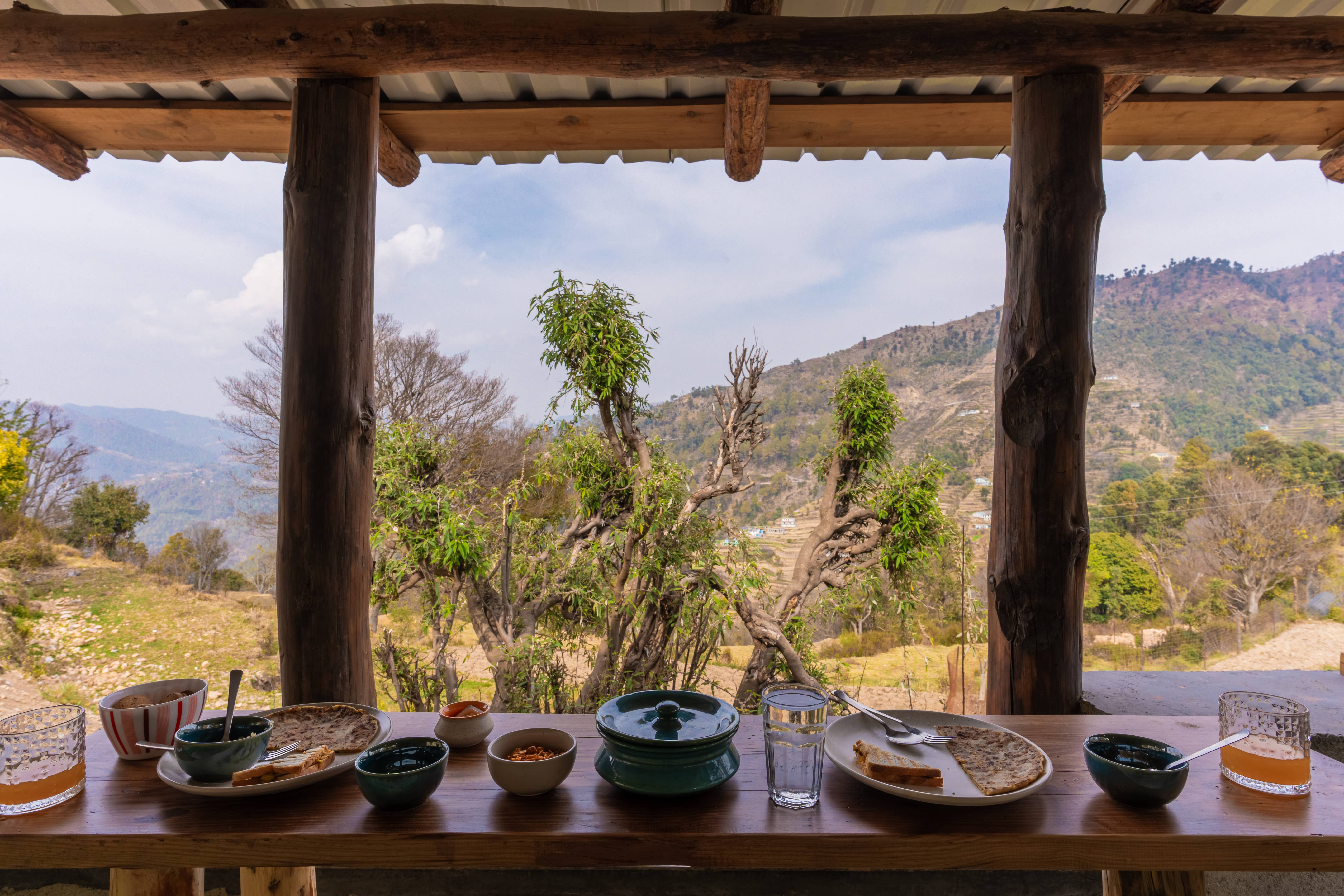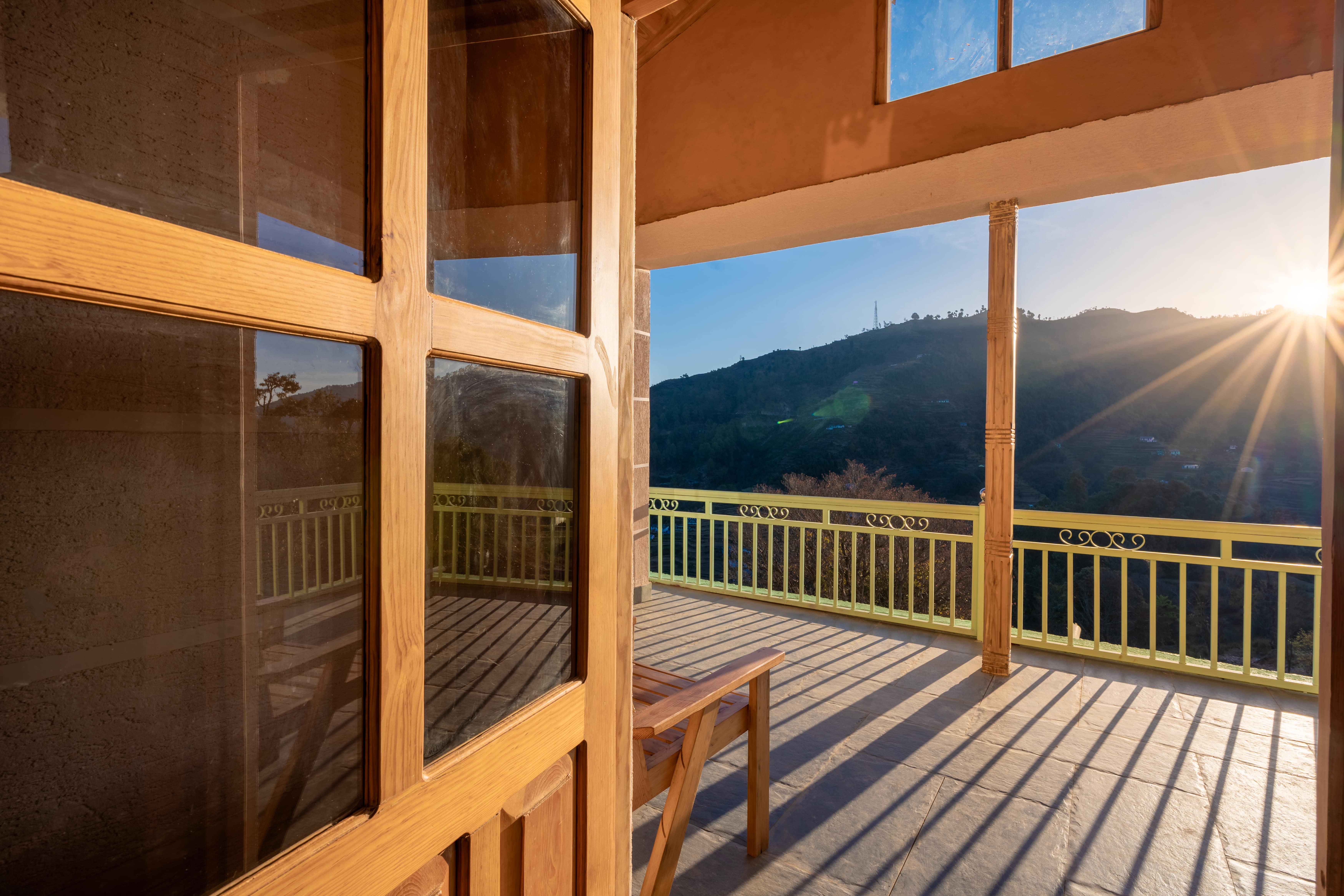 You will see mountains and greenery all around providing you with mesmerizing views. We face the east and the early sunrise from behind the mountains is a sight to cherish. On a clear day, you can enjoy the majestic snow capped mountains including Nanda devi and Trishul peaks. The chirping birds provide a soothing background music