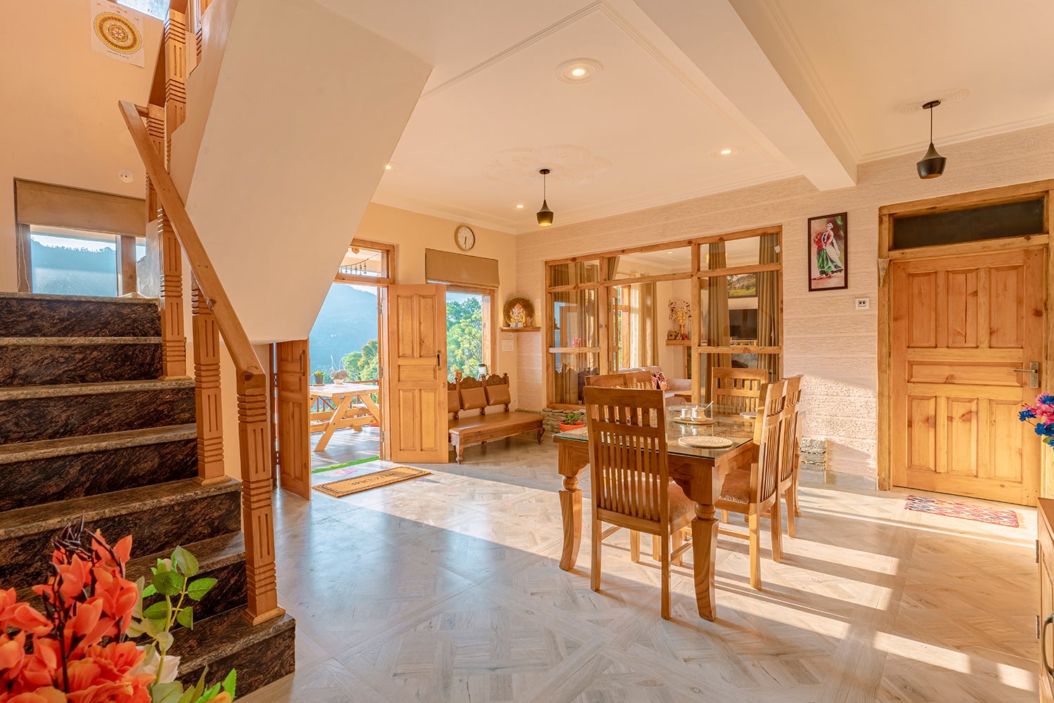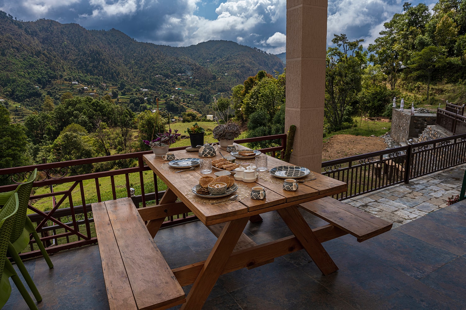 The property is full Oak, Pine and Deodar trees and contains a Chestnut orchard. The area is known for fruits like plum, peach, pear, apricot and figs. You can enjoy seasonal berries like Kaphal, Himalayan raspberries and Kilmora between May and June. Organic vegetables and exotic flowers ground around the property. It is a birdwatchers paradise and is home to a variety of birds and butterflies. You can spot langurs and barking deers if you are lucky.